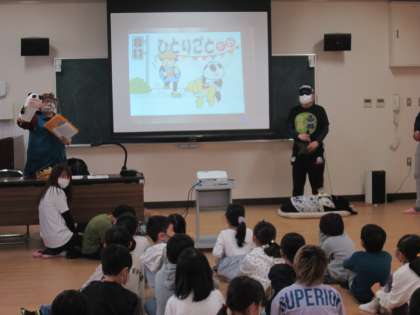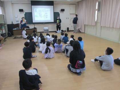 目が不自由な方の暮らしぶりについてお話をされ、生活の中で気を付けていることや困ること、また周りにいる私たちがどのような行動をすれば喜んでいただけるかを教えていただきました。視覚障がいのある方が日々されている工夫や、スマホを活用して生活に役立てているお話では、子ども達は思いもつかないアイデアに感心をしていました。