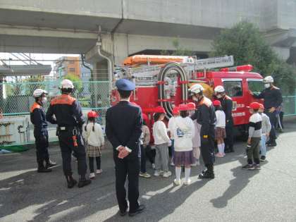 淀川消防署のみなさん、消防車のひみつや訓練を見せてくださったり、たくさんの質問に答えて教えてくださったり、本当にありがとうございました。