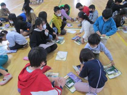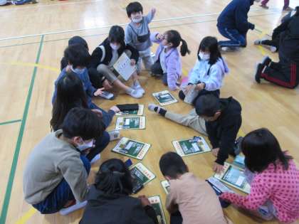 学校保健委員会の最後に、なかよし班で輪になって学習のふりかえりをしました。おなかが元気になるように、毎日の生活習慣の中で変えたらいいことや、続けて取り組んでいきたいことを書きまとめます。6年生のお兄さんとお姉さんが、どのように書いたらいいか迷っている下級生に優しく声をかけて助けてあげていました。