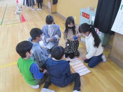 1年生のグループが回ってくると、2年生の子ども達がおもちゃの使い方やゲームのルールを説明してくれます。
