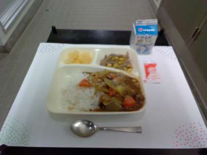 今日の給食「牛肉と金時豆のカレーライス」