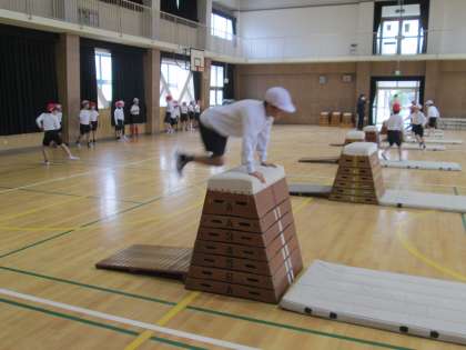 3年生 体育「ドンと踏み切って、トンと着地」(2)