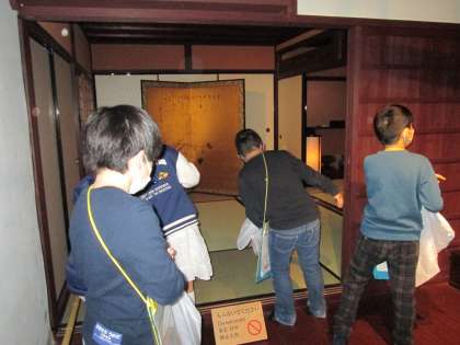 いくつかの住居はクツを脱いであがれるようになっていて、まるでお家の中におじゃましているような体験をすることができます。今では少なくなった和室の大広間や、昔のトイレなども見学しました。