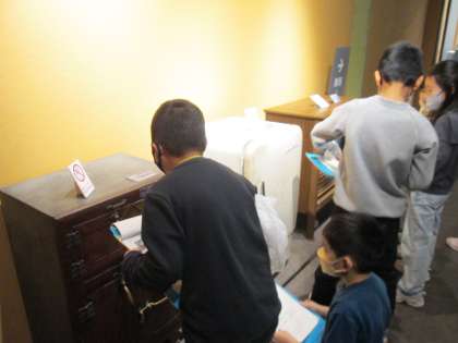 見たこともない道具や電気製品に子ども達は興味津々です。不思議そうな顔をしながら、道具の名前や使い方の説明を読んでいました。