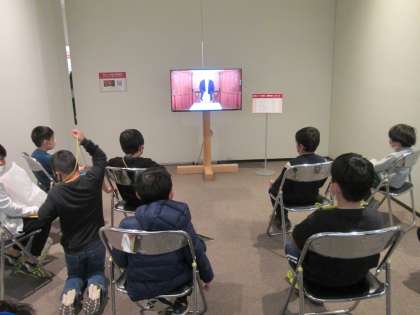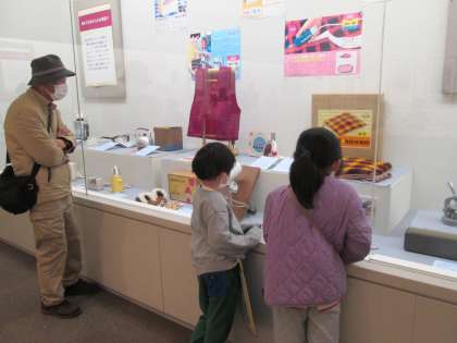 展示室の一角にモニターが設置されて、昔の道具を実際に使っている映像が流されているコーナーが子ども達に人気で、夢中で見入っていました。