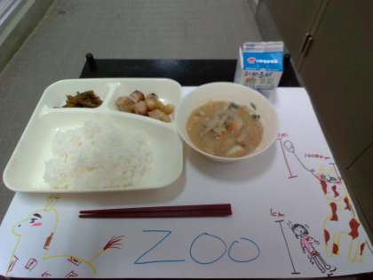 今日は「まぐろの甘辛焼き、豚汁、くきわかめのつくだ煮、ごはん、牛乳」でした。まぐろの甘辛焼きは少し厚めに切った白ねぎとまぐろを甘辛いたれでからめて焼き物機で焼き上げました。豚汁は、こんぶとかつおでしっかりとっただし汁に豚肉が加わり、うまみたっぶりの豚汁でした。それとごはんによく合うくきわかめのつくだ煮でした。これは何??という児童がいましたが、ごはんに合うとよく食べていました。