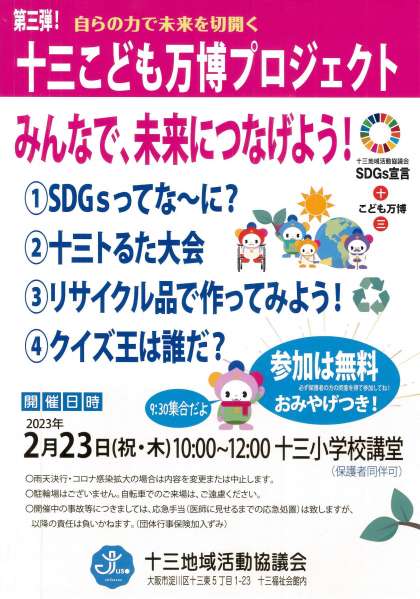 本日、午前10時から「十三こども万博プロジェクト」を開催しています。