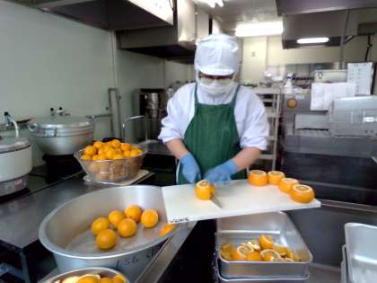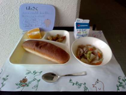 今日は「鶏肉のカレー風味焼き、洋風煮、はっさく、黒糖パン、牛乳」でした。年に一回のはっさくは、児童にとっても久しぶりで、皮をがんばってむいて食べていました。「甘い!」「「酸っぱい!」「苦い!」などいろいろな声がありました。