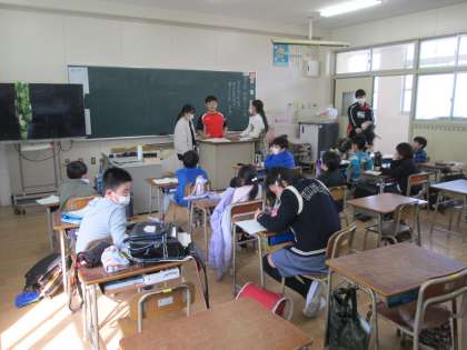 卒業式を来週にひかえ、今年度最後の地区別児童会では6年生の挨拶と、5年生への引き継ぎを行いました。4月から地区別児童会の班をまとめる地区長さんと副地区長さん、そして書記が5年生から選ばれ、春休みの安全な生活について話し合いをしました。