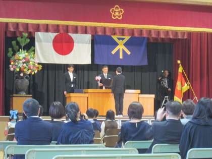 卒業証書が授与されると、舞台の上で保護者の方を向き、胸を張って感謝の気持ちや将来の夢をスピーチします。凛々しい姿に6年間の成長を感じ、講堂によくとおる子ども達の声に胸が熱くなりました。
