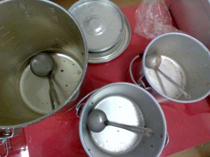今日は「さんどまめとコーンのサラダ」が一年生には大人気!!「おかわり!」「おいしい〜」とモリモリ食べていました。おかわりの様子(写真上)からっぽの食缶(写真中)をご覧ください!!!