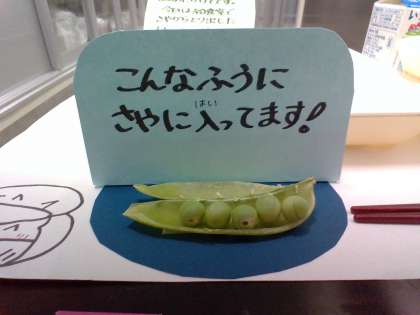 今日は「あかうおのしょうゆだれかけ、みそ汁、えんどうの卵とじ、ごはん、牛乳」でした。えんどうの卵とじのえんどうまめは、給食で年に1回だけ登場する旬の豆です。3年生の児童から「えんどうの卵とじおいしい〜」と声を聞いたので、「ホームページに作り方載せるので、作ってもらってね」と話をしました。ぜひ、ご家庭でも作ってみてください。