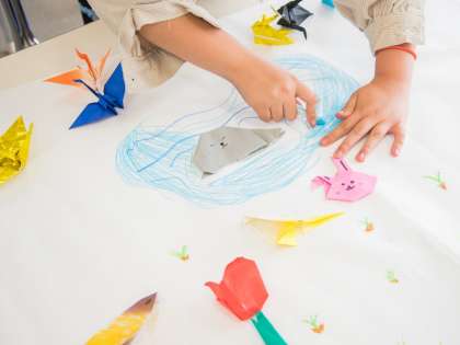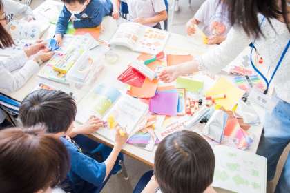 折り紙の本をみて、和気藹々と子供達が楽しそうに作成していました。