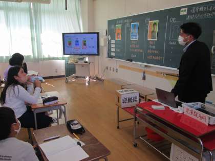 6年生は4月から社会で、私達のくらしを支えている政治のしくみについて学習をしています。今回の学習参観では自分が選んだ候補者の名前を投票用紙に記入し、それを箱に入れて当落を決める模擬選挙を行いました。