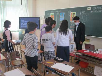 黒板に貼られた候補者のポスターの下には、それぞれの候補者が掲げる政策が書かれています。増税か減税か、子育て支援のアイデアは、高齢者の生活を守る福祉については、などなど。社会を取り巻く課題は山のようにあります。候補者が発信する意見を聞いて、子ども達はそれぞれの課題について深く考えて、投票履きに一票を投じていました。