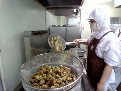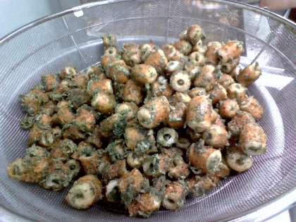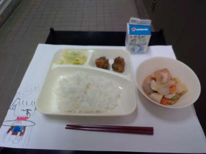 ちくわのいそべあげは、衣をつけて、油で揚げました。(写真上・中)サクッとしたころもと、もちっとしたちくわの食感がよく、好評なおかずでした。(写真下)