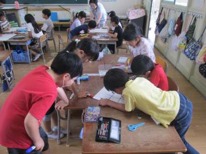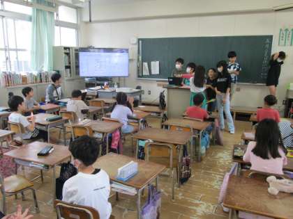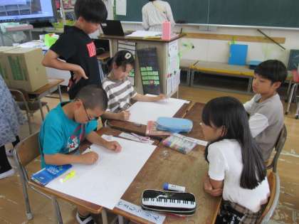 たてわり班活動は1年生から6年生の児童が一人、または二人ずつ入って構成されるグループです。異なった学年の児童が交流することで、高学年のリーダーシップと、下級生のフォロワーシップを養うことを目的としています。