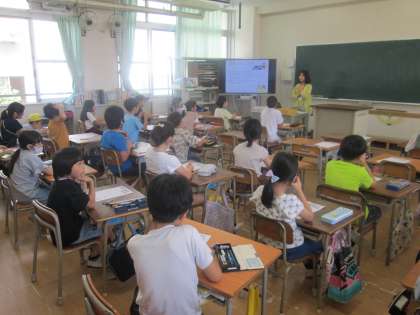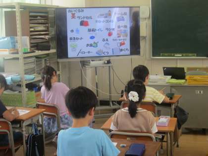 3年生も『防災ビンゴ』で、災害時に必要な物について学習しました。生きるために必要な食べ物や水はもちろん、ラジオや笛もあった方がいい物です。