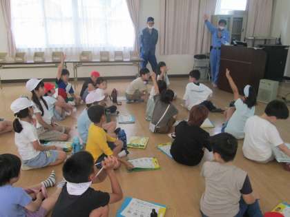 3限目は多目的室で、ゴミの分別収集について教えていただきました。大阪市では、風痛ゴミ、資源ゴミ、容器包装プラスチック、古紙と衣類の4つに分別して回収しているそうです。