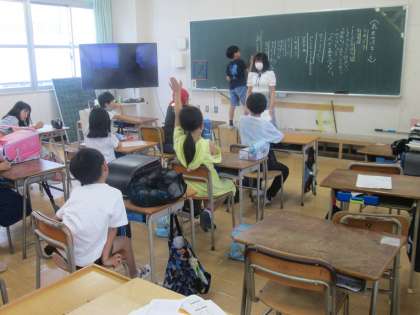 最後のテーマは「夏休みにがんばりたいこと」です。学校が休みで自由な時間がたくさんある夏休みだからこそ、いろいろなことにトライすることができます。子ども達からは学習のことや習い事の目標、お家の人のお手伝いをするなど、意欲的な意見が発表されました。