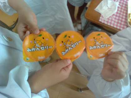 今日はデザートに「みかんゼリー」がつきました。1年生の児童から、みかんゼリーのふたの「顔が違う」という声がありました。(写真上)顔の違うものを、担任の先生も一緒に探してくれ、5つの種類があることがわかりました。ほっこりする一コマでした。