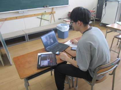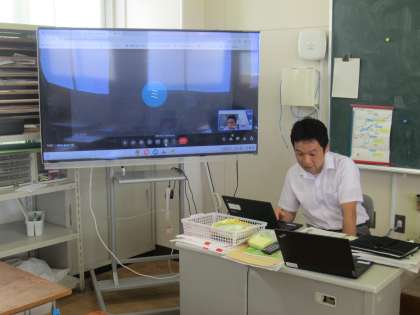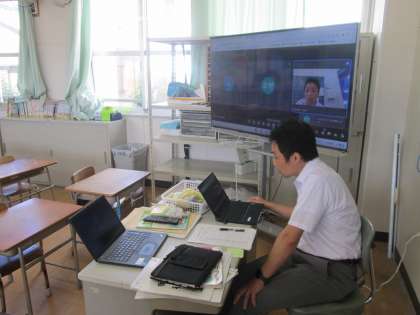 夏季休業の期間に3年生から6年生の児童は学習者用端末を家庭に持ち帰ります。その機会を利用して、学校と家庭をオンラインでつなぎ双方向通信ができるかを確かめる接続テストを行いました。
