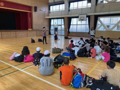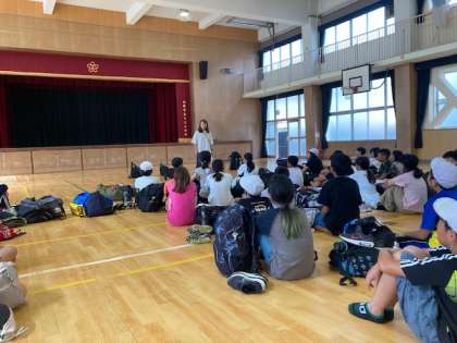 大阪の暑さはさらに厳しく、体育館で帰校式を行いました。(急な時間変更にご対応いただき、ありがとうございました。)