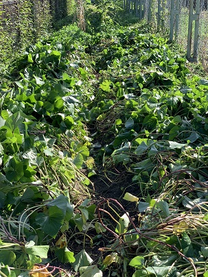 つるが生い茂り中まで日が当たらないので、つるをひっくり返す「つる返し」という作業をしました。