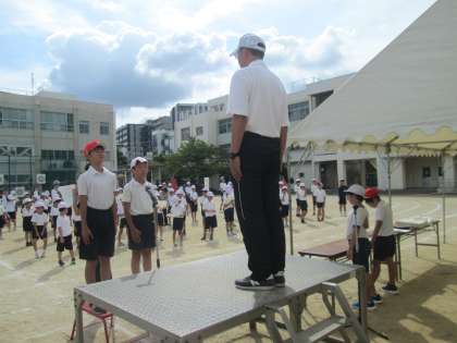 1限目に全児童が運動場に集まり、まずは入場行進の練習をしました。全員で足並みをそろえて行進をし、運動場に大きく広がって並ぶとそれだけで壮観な眺めです。