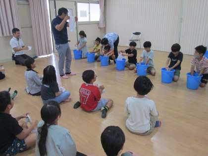 子ども達も繰り返し練習をして、最後には声をそろえて「たてしぼり〜〜!」と、縦絞りをマスターしました。今日の掃除の時間から活用できそうです。