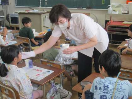 2年生では学校医の歯科の先生方に来ていただき、歯みがき指導をしていただきました。2年生は乳歯から永久歯に生え変わる児童も多く、虫歯にならないために正しい歯の磨き方を身に着けることが大切です。