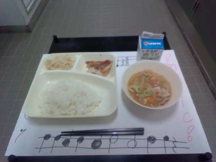 今日は「あかうおのしょうゆだれかけ、豚汁、もやしのゆずの香あえ、ごはん、牛乳」でした。今日は和食の献立でした。魚の中でも、あかうおは、児童に人気のある魚です。白身で食べやすい魚です。豚汁はごはんによく合い、このみそ汁おいしいと大人気でした。もやしもシャキシャキとした食感とゆずの風味がよく食べやすい味付けでした。