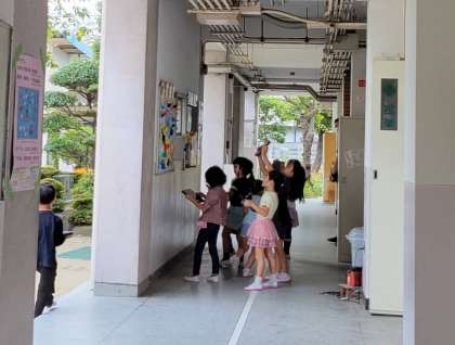みんな、校内にどんなものがあるかを探しながら、思い思いに撮影しました。
