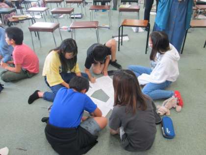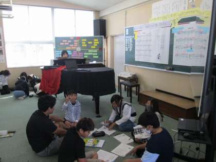 参観に来られた音楽研究部の先生方も、子ども達がグループ内で熱心に意見を交換する様子を興味深くのぞかれていました。