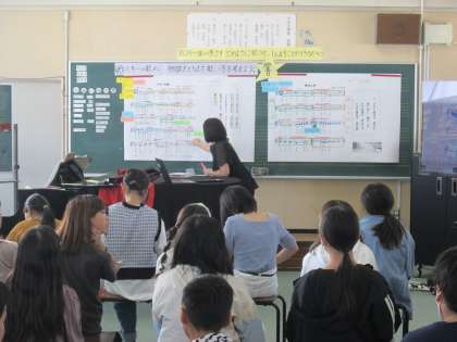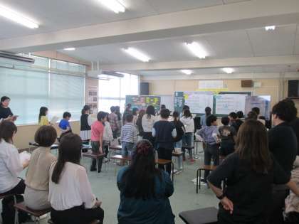 授業の後半には、『スキーの歌』の部分を分けて、担当したグループが話し合ったことを発表しました。