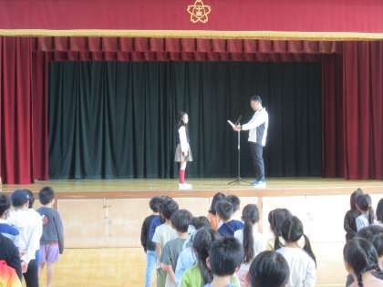 児童朝会 「自由研究で賞状をいただきました」
