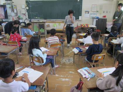 秋の学習参観には土曜日ということもあって、たくさんの保護者の方が来校してくださいました。お母さんやお父さん、おじいちゃんやおばあちゃんが自分達の教室に入ってきて、子ども達はワクワク。学習が始まると周りからたくさんの笑顔で見られているので、子ども達はドキドキ。いつも以上に、熱心に学習に取り組む姿が見られました。