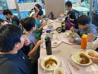見学の時間の合間に、昼食もとっています。いつもより早起きで、お腹が減っているのか、ペロリとたいらげていました。