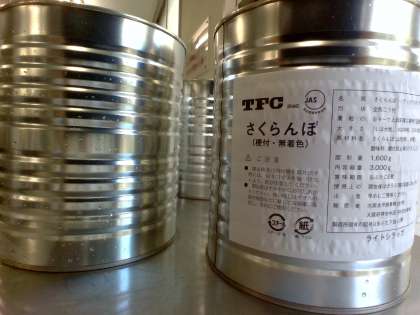 今日はデザートに、さくらんぼの缶詰がつきました。大阪市の給食のさくらんぼ(缶)は、漂白も着色もしていません。なので、色が黄色のさくらんぼです。
