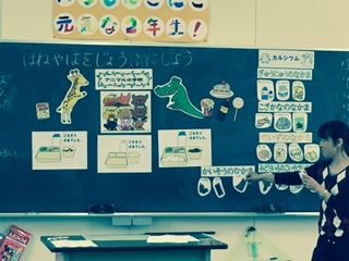 15日は「ほねやはをじょうぶにしよう」というお話です。好き嫌いの多いきりんさんが骨を折ったり、わにさんが虫歯になったりした原因を考えました。(写真下)
