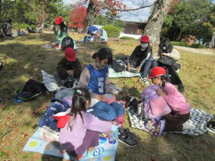 なかよし班でポイントを回って、大きな湯ぐでたっぷり遊んだあと、楽しいお弁当&おやつタイムを取りました。