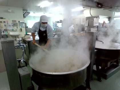 今日は2学期最後の給食でした。「和風焼きそば、きゅうりのしょうがづけ、いり黒豆、黒糖パン1/2、牛乳となかよし遠足の時に中止した白桃(缶)」でした。和風焼きそばは、かつおぶしをかけて食べました。野菜もたっぷりでボリュームもありました。きゅうりは歯ごたえもよく、しょうがの風味がきいてさっぱりとしておいしかったです。