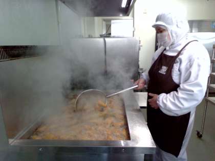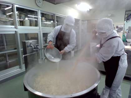 たらフライは一人一切れあり、サクサクとした歯ごたえもよく人気がありました。(写真上)それと、寒い日には体が温まるうすくず汁(写真中)と旬のほうれんそうを使ったおひたしの組み合わせでした。