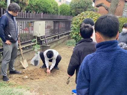 正門の横に植えましたので、中学生になってもその成長が見られそうです。