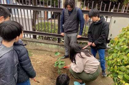 地域と学校をつなぐ取組を進めていただいている「はぐくみネット」事業の一環で、6年生が地域の方と一緒にレモンの木を植樹しました。
