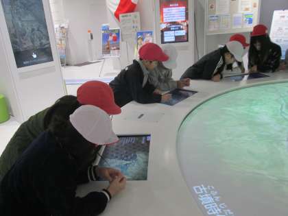 自分達が住んでいる淀川区が津波や地盤の液状化が起こる対象の地域であることを見て、子ども達の表情も真剣になっていました。