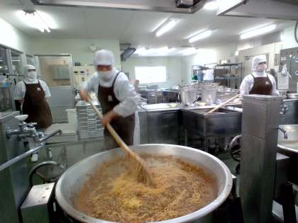 今日は「ミートソーススパゲッティ、レタスとコーンのサラダ、いもけんぴフィッシュ、ミニコッペパン、牛乳」でした。