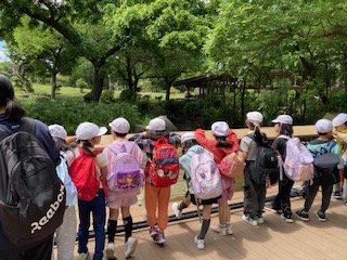 今日は春の遠足で1・2年生は天王寺動物園に来ています。