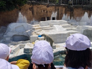 「おまけポイント」の「ホッキョクグマ」のダイビングを見て、お待ちかねの「お弁当タイム」。