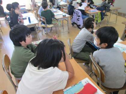 道徳の『気づいていなかったこと』という教材は、お友達の家に遊びに行った場面のイラストが並んでいます。ところがイラストをよく見ると、「何だかおかしいな」と感じます。まずは、グループでどこがおかしいと思うかを話しあいました。